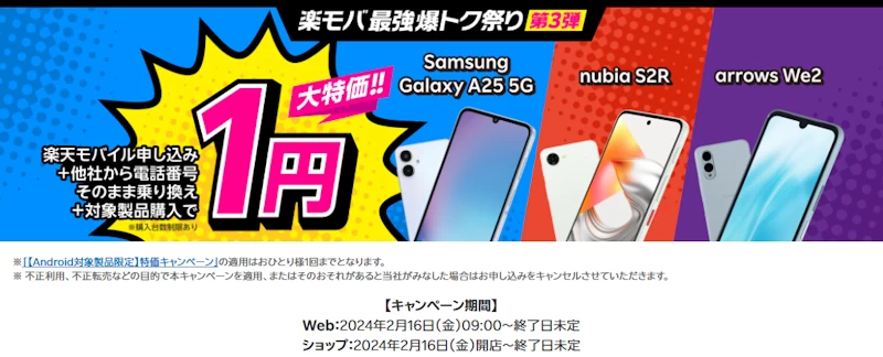 楽天モバイルで、現在実施中の公式キャンペーンは、下記ページから確認できます。